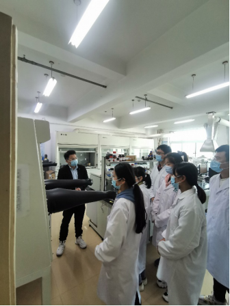 图3. 物电公司开展实验室安全教育:刘胜红博士向研究生们讲授实验室安全注意事项,并带领研究生检查实验室仪器安全运行情况