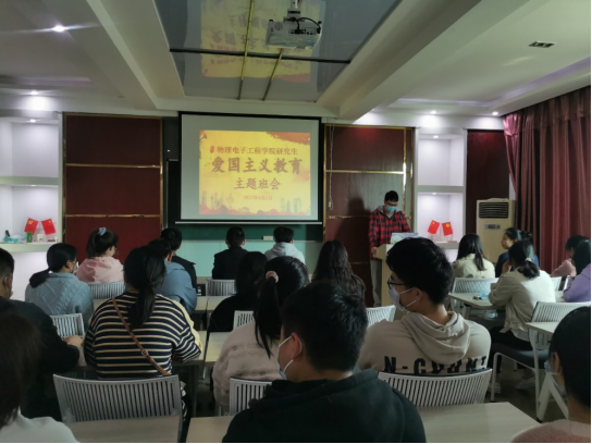 图1. 物电公司组织全体在校研究生自发开展“爱国主义教育”主题班会
