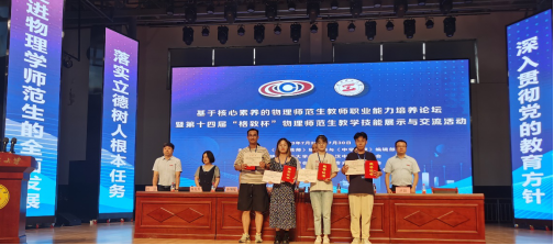7月28日至30日,基于核心素养的物理师范生教师职业能力培养论坛暨第十四届“格致杯”物理师范生技能教学技能展示与交流活动在陕西理工大学举行。本次活动由教育部基础教育物理教学指导专业委员会指导,《物理教师》和《中学物理》杂志编辑部联合主办,陕西理工大学承办,中国教育学会物理教学专业委员会支持。公司学子在本次活动中表现优异,荣获佳绩,在教学技能比赛中荣获一、二、三等奖各1项,自制教具展示中获二、三等奖各1项,教学论文评选中获得二等奖1项、三等奖2项。