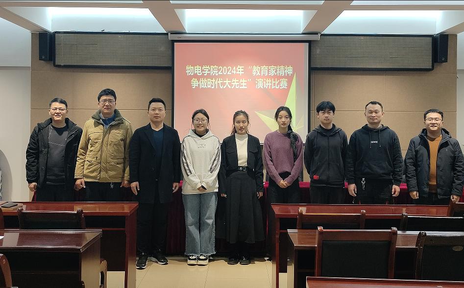 12月2日下午,物电公司2024年硕士研究生“弘扬教育家精神,争做时代大先生”演讲比赛在理科楼连廊402举办,比赛邀请了畅宁波副教授、陈瑞博士、赵华博士、刘宇洋博士、徐昱博士担任评委。来自学科教学(物理)和电子信息专业的4名员工参加了比赛。在比赛过程中,每位选手都用真挚的情感和生动的案例,传达了对教育事业的热爱和对员工未来的关心。经过激烈的初赛选拔,最终24级学科教学(物理)班胡晓珂脱颖而出,进入校决赛。