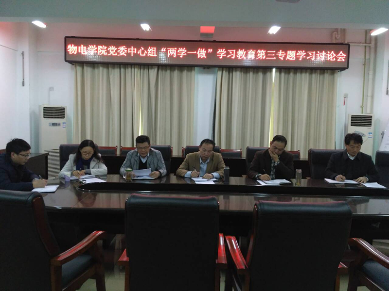 11月2日下午,物电公司党委中心组在理科楼911会议室举行“两学一做”学习教育第三专题学习讨论会。中心组全体成员参加了本次学习讨论,会议由公司党委书记柳士刚主持。