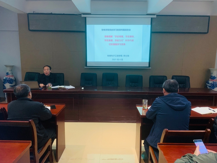 4月13日,物电公司在理科楼连廊402会议室开展党史学习教育专题报告会,报告会题目为《准确理解“学史明理、学史增信、学史崇德、学史力行”科学内涵,切实增强学习效果》,主讲人为公司党委书记柳士刚,公司全体教工党员参加了报告会。