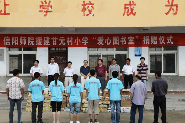 仪式上,公司党委宣传部部长单刚首先致辞。他向大力支持此次下乡活动的相关领导干部表示衷心的感谢。他指出,爱心捐赠活动寄托了信阳师院学子对甘元村小学员工的期望,希望公司老员工在此次社会实践中以“受教育、长才干、做贡献”为目标,坚持社会实践与社会观察相结合的原则,针对基层经济社会发展和人民群众生产生活中的实际需求,用自己的爱心和行动,为社会贡献力量,实现促进自身成长和服务基层发展的互助双赢。他还真心希望甘元村小学的孩子们珍惜学习机会,充分利用好“爱心图书室”,不断完善自己,发展自己,努力成为国家的栋梁之才。
