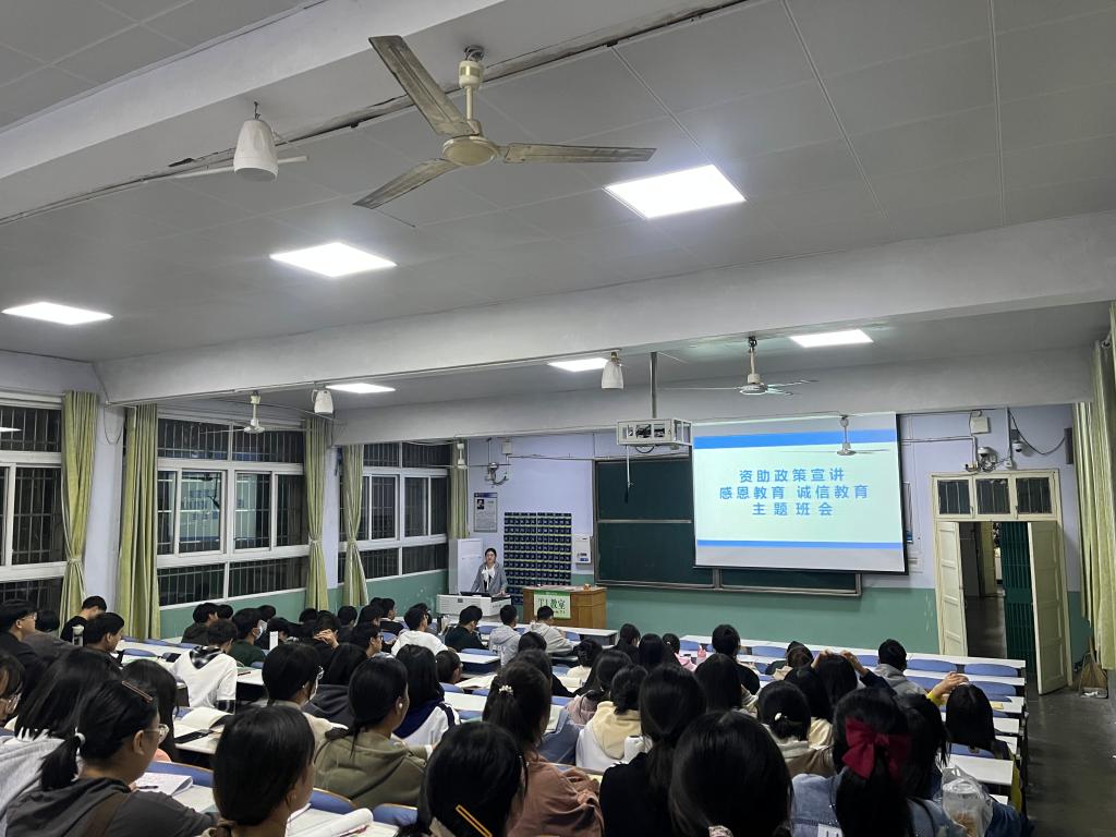为了改善广大学子的学习生活质量,扎实推进精准扶贫工作,物电公司于10月4日晚在教二楼01多媒体教室成功召开了2022级新生家庭经济困难员工资助政策宣传教育会。资助专员赵雪担任宣讲会主讲,2022级全体新生共同聆听。
