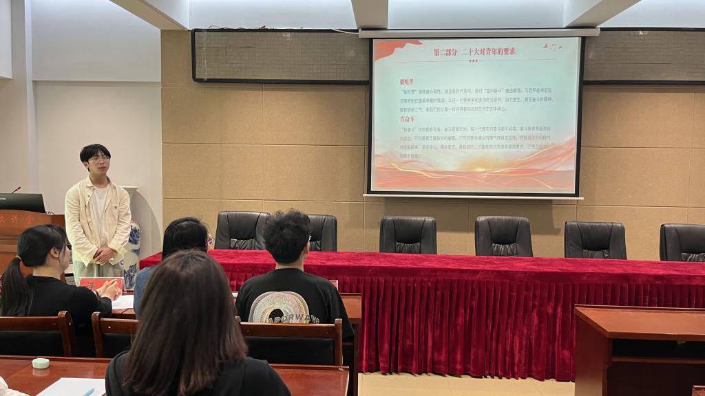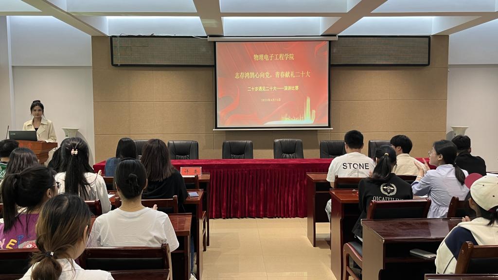 为深入学习贯彻党的二十大精神,引导同学们自觉践行社会主义核心价值观。4月15日,公司于理科楼402会议室举行以“志存鸿鹄心向党,青春献礼二十大”为主题的二十岁遇见二十大演讲比赛。此次比赛由团委老师牛文娟,员工会主席团成员担任评委,张佳琪主持。