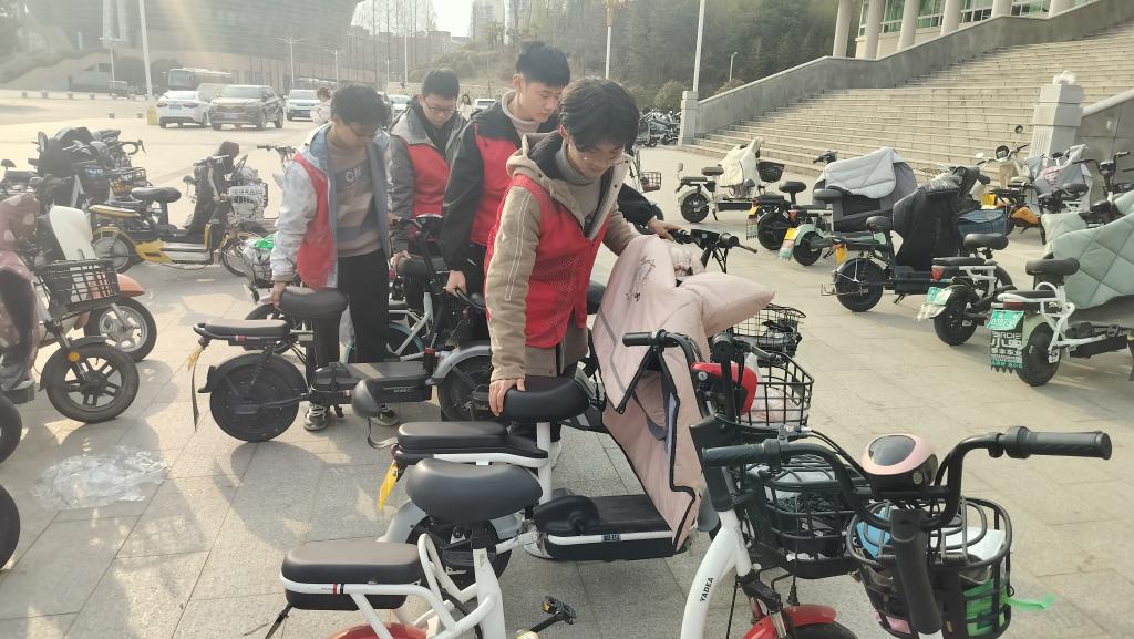 此外,志愿者们还对停放电动车的同学进行了耐心指导。他们向同学们详细讲解了电动车停放的规则和要求,强调了规范停放的重要性,并引导同学们将电动车停放在指定区域。同学们纷纷表示,经过志愿者的引导和提醒,他们今后将更加注重电动车的规范停放,共同维护校园的文明秩序。