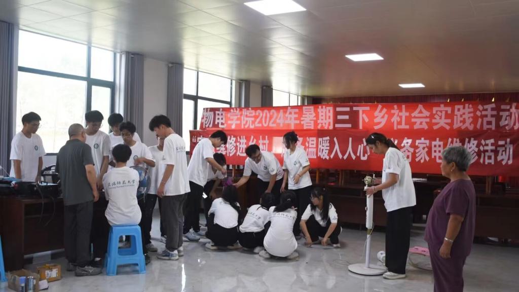 维修队成员们利用自己的专业知识和所学技能,为居民群众维修电器、解决难题,他们用实际行动践行青年学子的责任与担当,为构建和谐社会贡献青春力量。