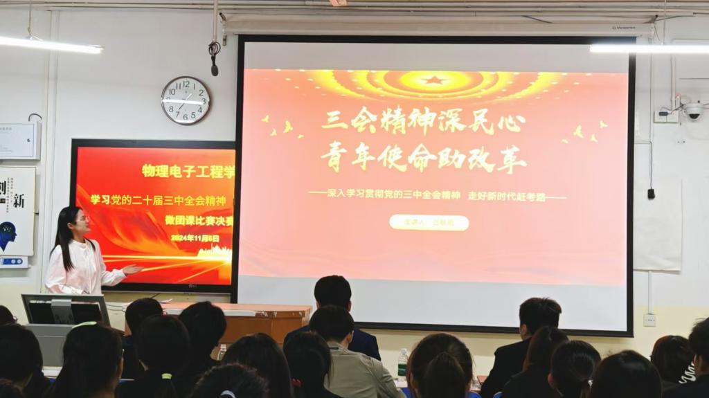 11月5日,公司在教三205举办“学习党的二十届三中全会精神,争做挺膺担当奋斗者”主题微团课大赛。法学与社会公司、建筑与土木工程公司、英国上市365辅导员担任评委。各年级员工团干部以及青年代表共同参加。