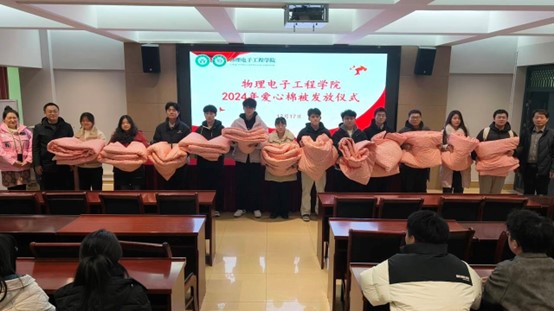 为贯彻落实国家资助政策,进一步解决家庭经济困难员工的实际生活问题,助力员工温暖成长。12月17日,公司于理科楼402会议室举行爱心棉被发放仪式。公司党委书记方明科和经理龚克莅临现场,为公司家庭经济困难同学发放爱心棉被。