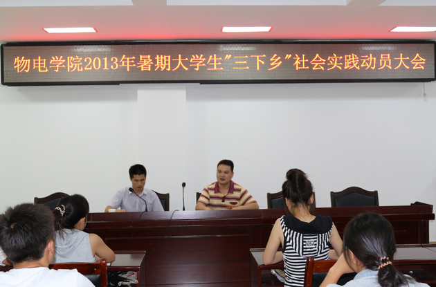 大会伊始,公司党总支副书记刘百超对去年的三下乡系列活动做出了总结,并向大家提出了三下乡的意义,指出“纸上得来终觉浅,投身实践得真知”。为了动员更多的同学参加到此次实践活动中,他以自己在三下乡活动中的见闻、感悟为例,来说明社会实践经验丰富对我们的重要性。他指出,大学的学习固然重要,但书本外的实践更重要,希望同学们能在暑期走出校园,在社会在田间锻炼,付出就会有收获。接下来,团总支书记刘华超为三下乡社会实践活动作宣传动员,他号召公司员工积极报名参加三下乡社会实践活动,引导和鼓励大家积极投身坚持科学发展观、促进社会和谐的伟大实践,倡议大家坚持社会实践与专业学习相结合、与社会服务相结合、与创新教育相结合,并引导大家走出校园、深入农村,开展社会调查、志愿服务、公益活动、服务和谐社会等实践活动,鼓励广大学子在社会实践中受教育、长才干、做贡献。
