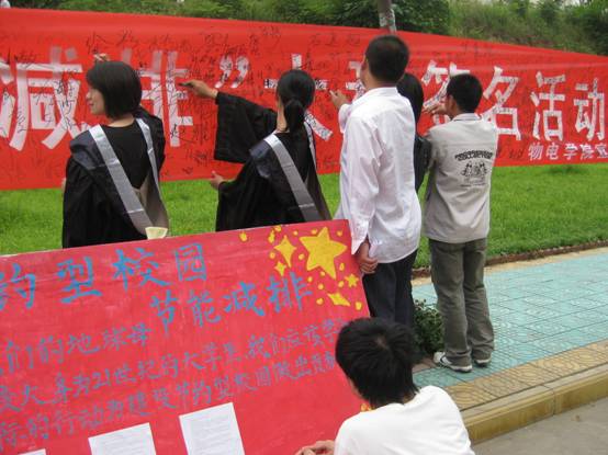 5月26日下午,公司在桃李园前举办“节能减排”建设节约型校园大型签名活动,路过师生纷纷拿起签字笔在条幅上签名。