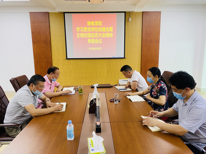6月5日,公司在理科楼911会议室召开学习贯彻公司创建全国文明校园动员大会精神专题会议。公司党委书记柳士刚、经理涂友超、副书记副经理仓玉萍、副经理孙宜海、经理助理龚克、办公室主任周理海、公司专职组织员张康华参加了会议。会议由柳士刚主持。