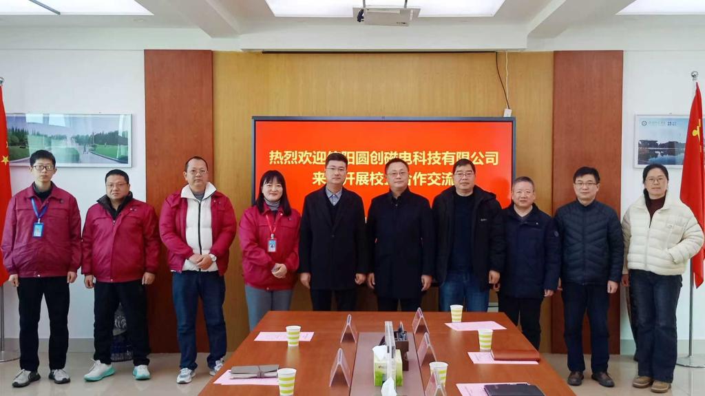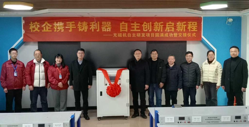 12月5日,公司与信阳圆创磁电科技有限公司在理科楼举行校企合作项目交付仪式,标志着双方合作取得重要阶段性成果。仪式上,由公司研发团队精心研制的新型高性能脉冲充磁机顺利移交至企业。信阳圆创磁电科技有限公司厂长吴磊、人力资源部经理陈婧、技术部主管代德明,公司党委书记方明科,副经理刘墨林、陆阳,以及项目研发团队教师代表马建忠、余大庆、张昆等共同出席了交接仪式。